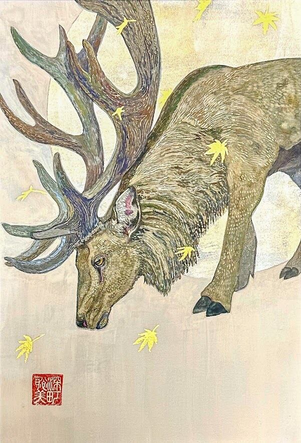 繊細に描かれた鹿の姿は、秋の訪れを静かに告げるかのよう。