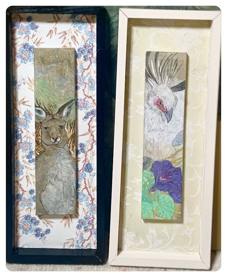 カンガルーとの遭遇を思い出に変え、和と南国のエッセンスを組み合わせた新しいスタイルの日本画をお楽しみください。